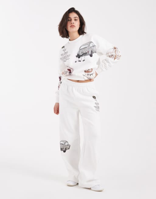 Six Stories – Jogginghose in Weiß mit Winterhochzeit-Grafikmotiven, Kombiteil
