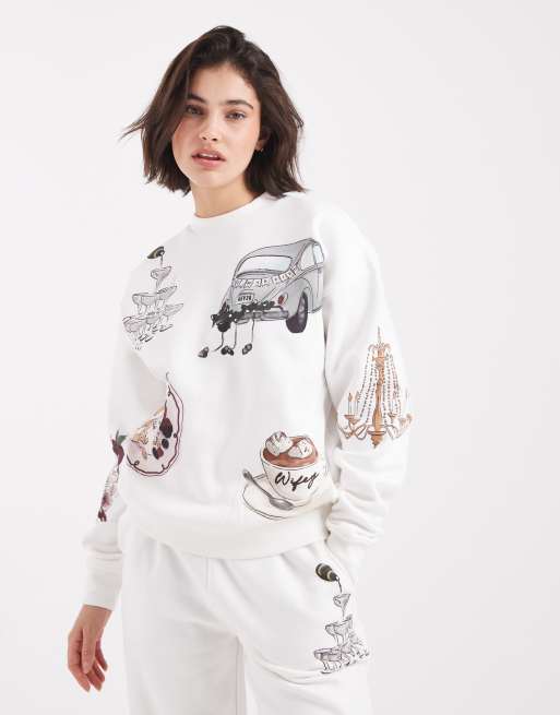 Six Stories – Sweatshirt in Weiß mit Winterhochzeit-Grafikmotiven, Kombiteil