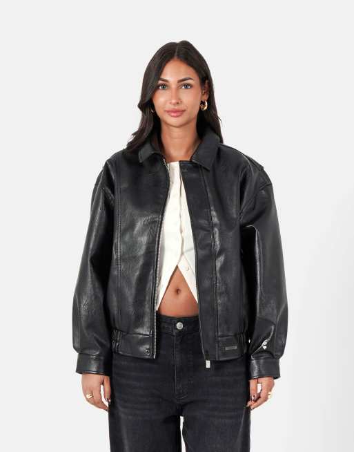 Sixth June – Bomberjacke aus Kunstleder in Schwarz