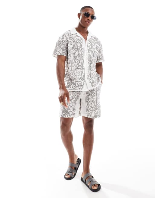 Sixth June – Gemustertes Set aus Leinen in Weiß mit Reverskragen