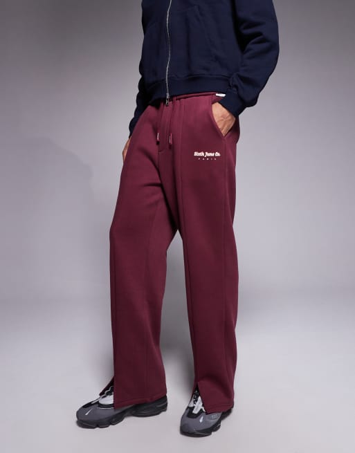 Sixth June – Gerade geschnittene Jogginghose in Burgunderrot mit Saumschlitz