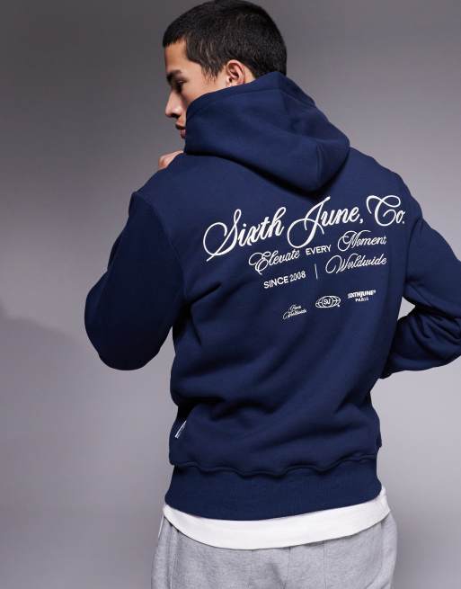 Sixth June – Kapuzenpullover in Navy mit Logoprint am Rücken