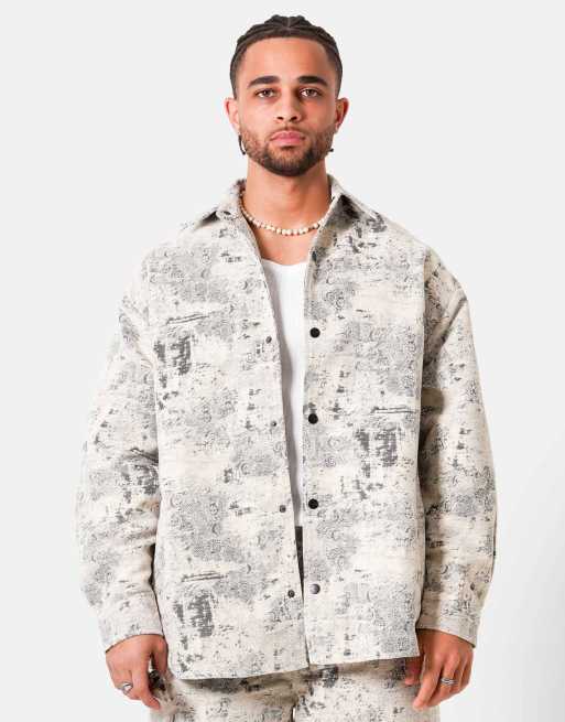 Sixth June – Strukturiertes, langärmliges Hemd in Beige mit Paisleymuster