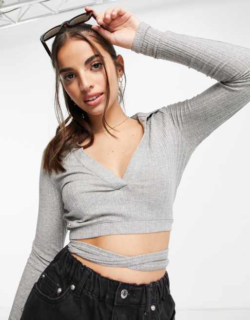 Skylar Rose – Langärmliges, kurzes Oberteil mit Rückenausschnitt, Kragen und Taillenschnürung