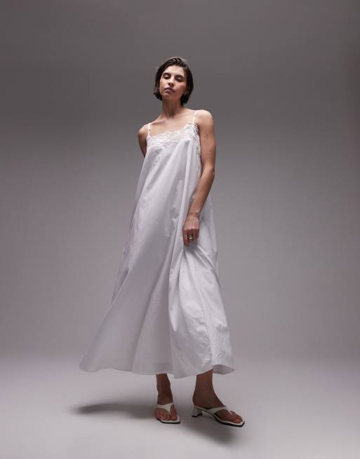 SNDYS – Ausgestelltes Maxikleid in Weiß mit Besatz aus Blumenspitze