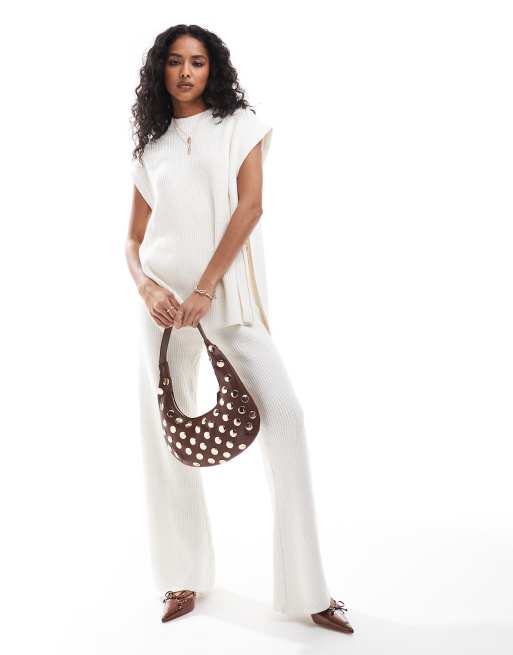 SNDYS – Gestricktes Baumwoll-Set in Weiß aus hochgeschlossenem Pullunder und weit geschnittener Hose