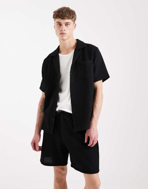 Sol Beach – Strand-Shorts in Schwarz mit Waffelstruktur
