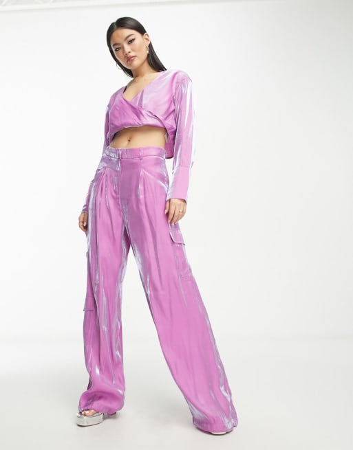 Something New X Madeleine Pedersen – Schillerndes Set aus kurzer Bluse und Cargohose