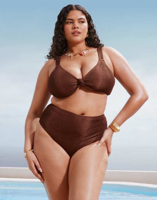 South Beach Curve – Bikini in Braun mit Knitterstruktur