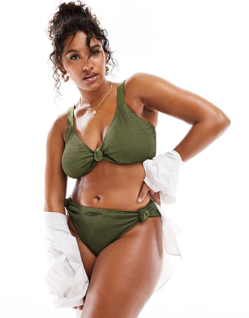 South Beach Curve – Bikini in Salbeigrün mit Knitterstruktur