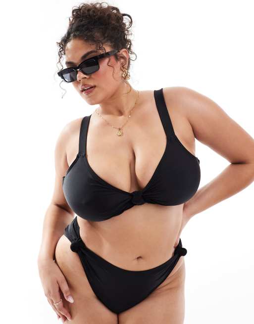 South Beach Curve – Bikinihose in Schwarz mit hohem Bund und Zierknoten vorne