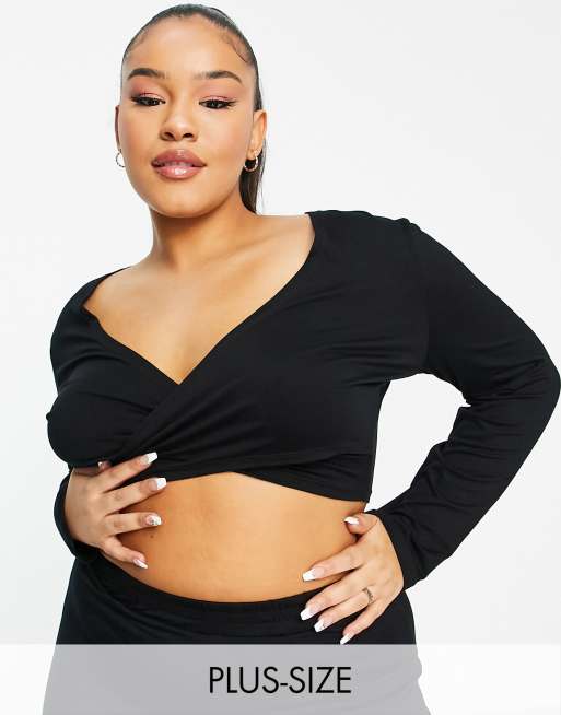 South Beach Plus – Langärmliges Wickeloberteil in Schwarz mit kurzem Schnitt