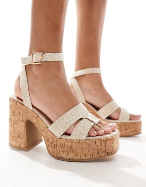 South Beach – Absatz-Sandalen mit Kork-Sohle in Natur