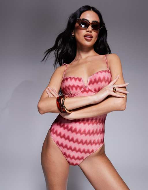 South Beach – Bügel-Badeanzug in Glitzer-Rosa mit Chevron-Muster