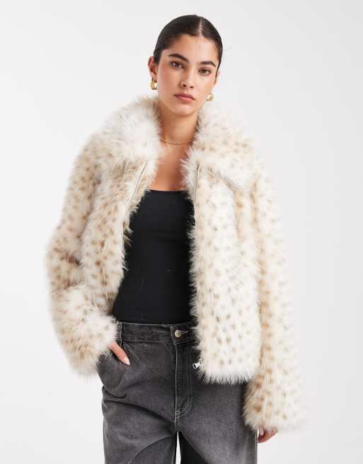 South Beach – Bunt gemusterte Kunstpelzjacke mit Reißverschluss
