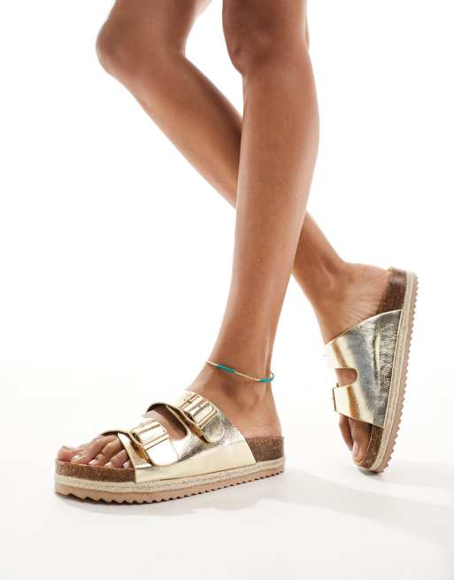 South Beach – Espadrilles-Sandalen in Gold mit zwei Schnallen