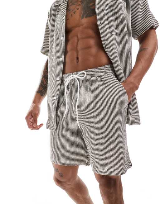 South Beach – Gestreiftes Strand-Set aus Strick in Braun und Weiß