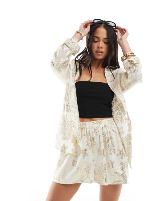 South Beach – Jacquard-Shorts mit Metallic-Seesternmuster in Gold