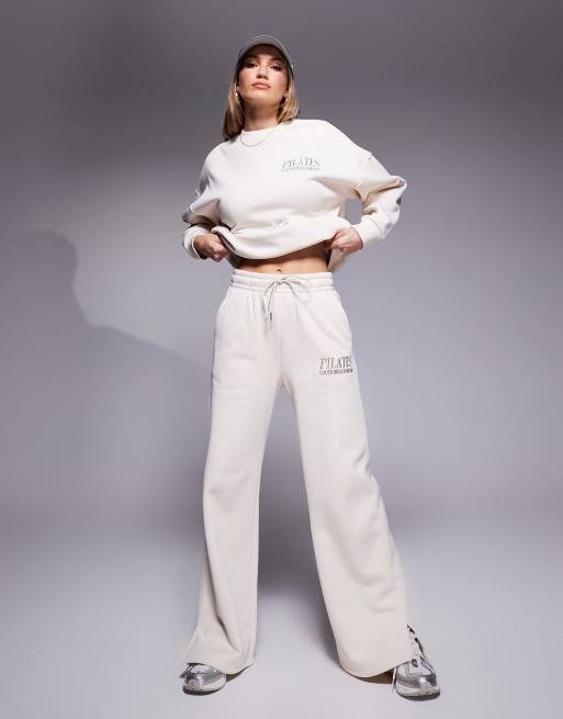South Beach – Jogginghose in Creme mit weitem Schnitt