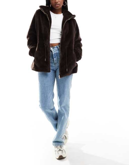 South Beach – Kunstpelz-Jacke in Kakao-Braun mit Kordelzug in der Taille