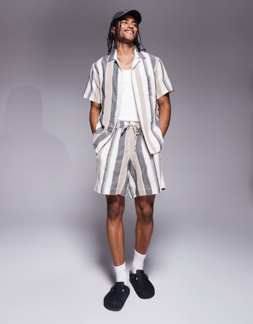 South Beach – Kurzärmliges, strukturiertes Strandhemd mit bunten Streifen
