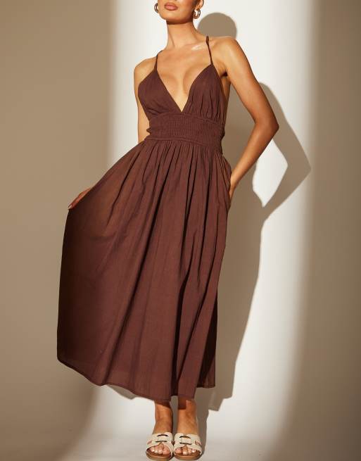 South Beach – Maxikleid in Braun mit Neckholder