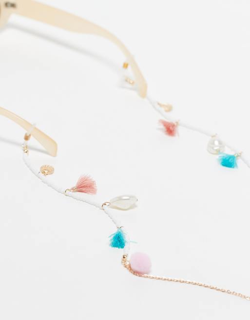 South Beach – Sonnenbrillenkette in Gold mit Kunstmuschel- und Quastenanhängern