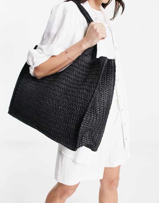 South Beach – Strandtragetasche in Schwarz aus gewebtem Stroh