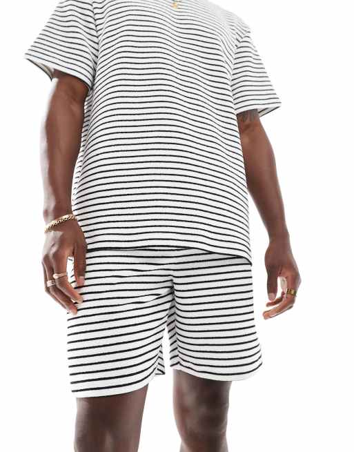 South Beach – Strukturiertes, gestreiftes Strand-Set in Schwarz und Weiß