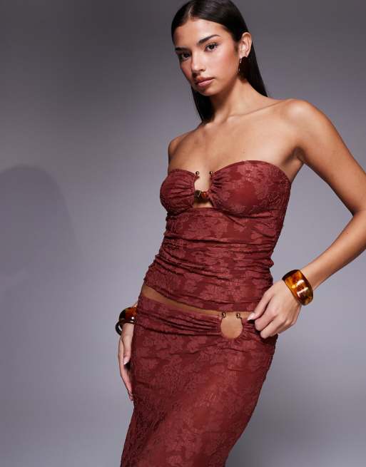 South Beach – Trägerloses Strandoberteil in Rostrot mit Ausbrennermuster