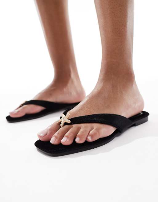 South Beach – Zehenstegsandalen aus schwarzem Samt mit Seesterndetail