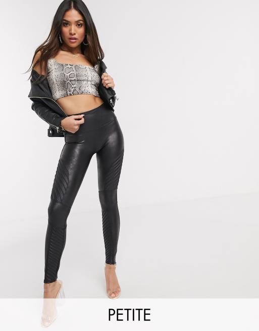 Spanx Petite – Schwarze Biker-Leggings in Lederoptik mit konturiertem Power-Bund