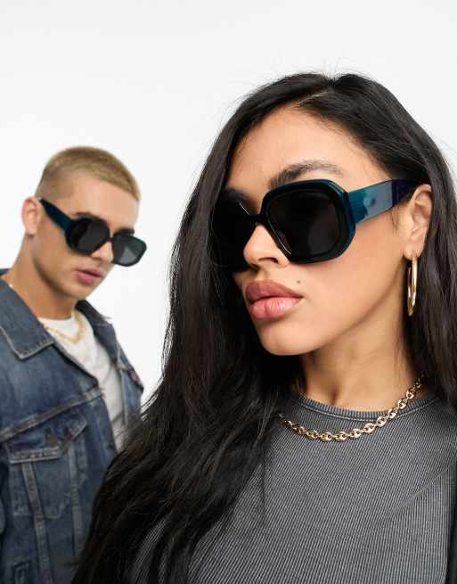 Spitfire – Cut Sixty Three – Eckige Oversize-Sonnenbrille in Schwarz und Türkis
