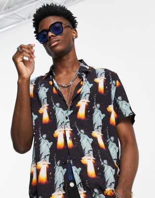 SSS World Corp – Hemd in Schwarz mit Freiheitsstatue-Muster