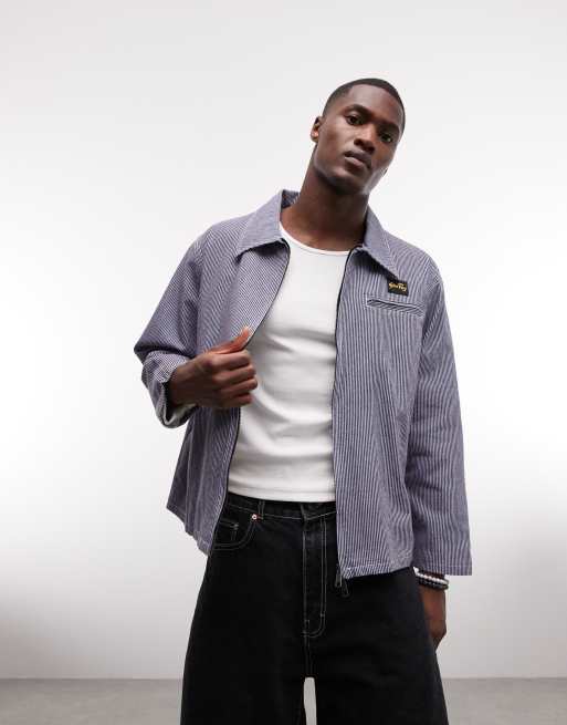 Stan Ray – Jeansjacke mit Reißverschluss und Hickory-Streifen in Blau-Bunt