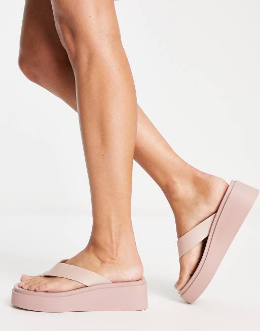 Steve Madden – Carlene – Zehenstegsandalen in Altrosa mit flacher Plateausohle