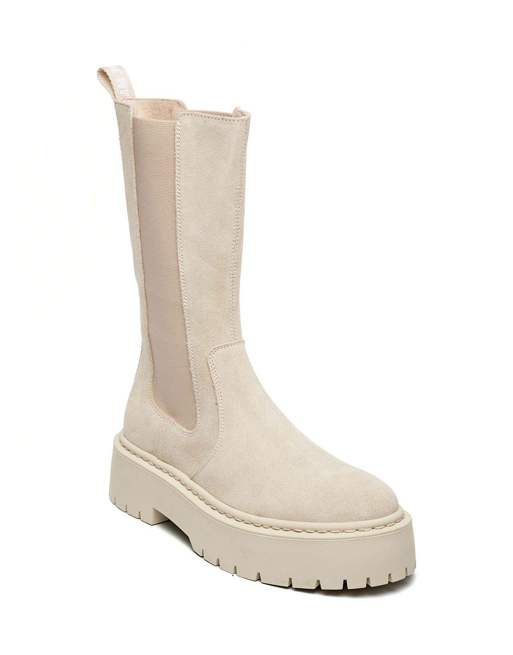 Steve Madden – Vivianne – Wadenhohe Stiefel aus Wildleder in Beige