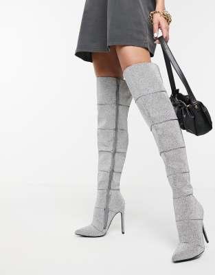 Steve Madden – Wonders – Overknee-Stiefel mit Stilettoabsatz in Silber