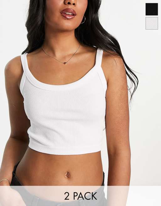 Stradivarius – 2er-Pack nahtlose, gerippte Tops mit kurzem Schnitt in Schwarz und Weiß