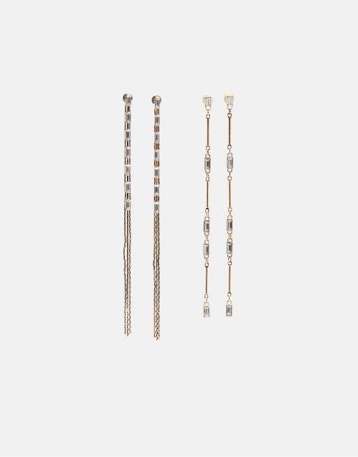 Stradivarius – 2er-Set Hängeohrringe in Gold-Optik mit Schmucksteinen