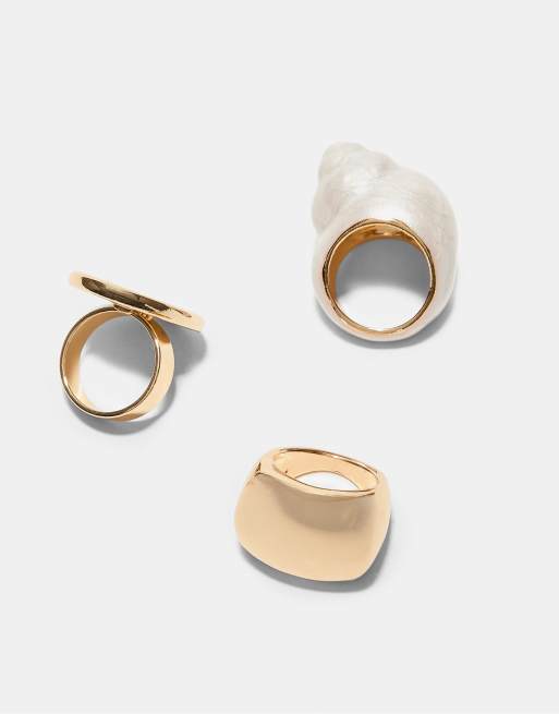 Stradivarius – 3er-Set emaillierte Ringe in Ecru mit Muscheldesign