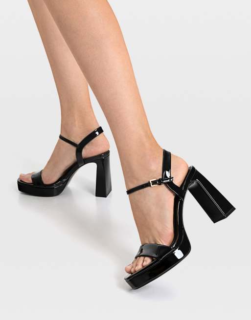 Stradivarius – Absatzsandalen in Schwarz mit Plateausohle