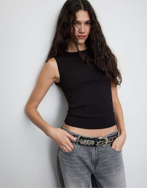 Stradivarius – Ärmelloses Basic-T-Shirt in Schwarz