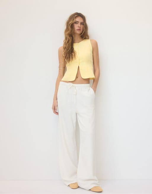 Stradivarius – Ärmelloses Top in Gold mit Knöpfen