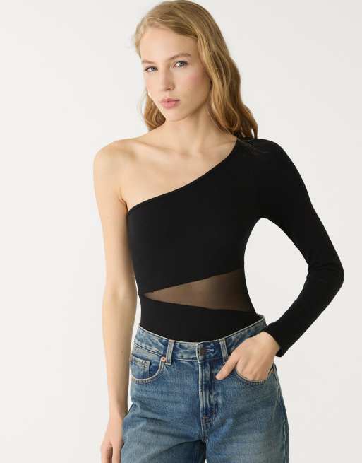 Stradivarius – Asymmetrischer Body in Schwarz mit durchscheinenden Details