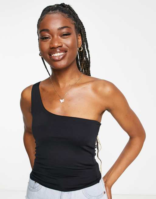 Stradivarius – Asymmetrisches Trägertop in Weiß