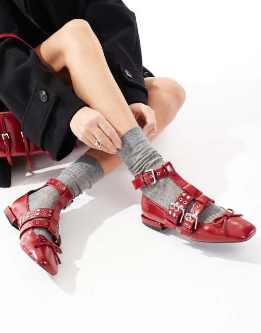 Stradivarius – Ballerinas in Rot mit Schnallendetail