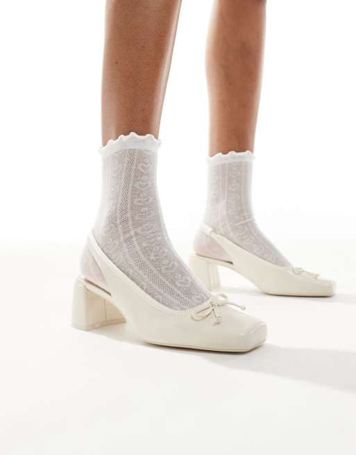 Stradivarius – Ballerinas in Weiß mit Absatz