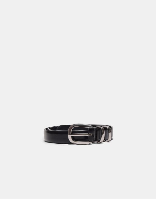 Stradivarius – Basic – Gürtel in schimmernder Lederoptik in Schwarz