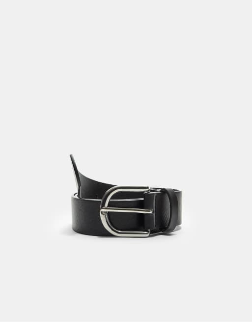 Stradivarius – Basic-Gürtel in Schwarz mit runder Schnalle